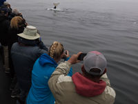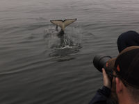 Op dagen met orka’s krijg je zelden andere soorten walvissen te zien. Bij de ferry-overzet naar de Channel Islands was er van de orka’s geen spoor. Ditmaal kregen we wel een grijze walvis in een van de baaien van de Channel Islands te zien, kort daarop gevolgd door minstens drie springende bultruggen.