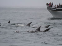 De dag erop stond er een pelagische boottocht vanuit Monterey op het programma. De focus van deze boottrip? Orka’s! In de lentemaanden vind je ze immers voor de kust van Californië om de migrerende grijze walvissen en hun jongen te onderscheppen. Bij het buitenvaren van de haven botsten we meteen op een immense groep grampers. De groep telde 200 tot 300 exemplaren en bleef ruim een half uur rond de boot hangen voor ze de baai verlieten en het ruime sop kozen.
