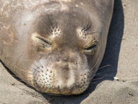De volgende dag trokken we verder noordwaarts. Langsheen de state Route 1 werden de rotskusten en kliffen bewonderd om uiteindelijk halt te houden bij een zandstrand. In de luwte en weg van de beukende golven lagen honderden noordelijke zeeolifanten te zonnen. Sommige jonge mannetjes vochten in de branding schijngevechten uit.