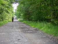 Omdat de wind iets te fel was voor de open stukken, besloten we richting bos te gaan. Onmiddellijk bij aankomst zagen we onze eerste parelmoervlinders, een familie die telkens weer voor uitdagingen zorgt om te determineren. Mits wat training en rekening houdende met habitat, periode en manier van vliegen, kom je echter al een heel eind in de vlucht. Zo vonden we de zilveren maan, de bosparelmoer en na wat zoeken ook de woudparelmoer. Typische soorten van hier waren eveneens verschillende bonte dikkopjes en bruine dikkopjes. Een eenzame distelvlinder was de enige van de trip en zoals op elke plaats tijdens het weekend, vlogen de kleine vossen en grote dikkopjes ook hier abundant. Een fluiter zat te zingen op de achtergrond, een levendbarende hagedis liet zich bekijken en een zomertortel zat langdurig te zonnen en liet zich zelfs fotograferen door de Swarovski.