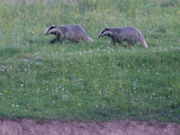 Het zoemertje, de roodborsttapuit, de boompieper en nog enkele mooie kalkgraslanddikkopjes waren hier ook aanwezig. Na een zuiderse maaltijd op het zonnige terras sloten we de dag af in halfopen habitat. Enkele raven werden vakkundig ingefloten door de gids en overal zaten de bosparelmoer en de zilveren maan te rusten. Een metaalglanslibel en enkele reeën werden waargenomen en ook vijf dassen waren present en heerlijk waar te nemen. Op de terugweg zagen we een vosje en enkele everzwijnen langs de weg. Topdag twee nemen ze ons niet meer af.